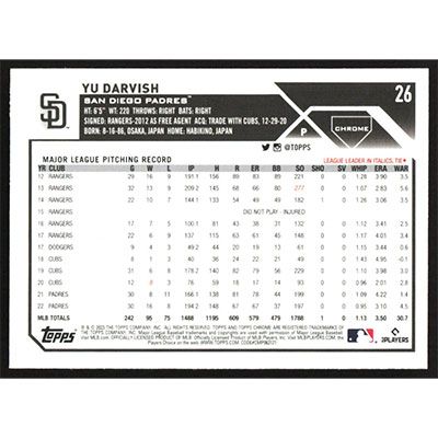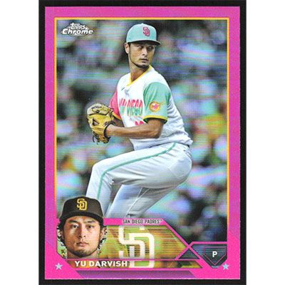 This is a 2023 Topps Chrome Pink Refractors Yu Darvish baseball card. The card is #26 and pictures show condition.