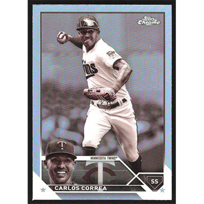 This is a 2023 Topps Chrome Sepia Refractors Carlos Correa baseball card. The card is #140 and pictures show condition.