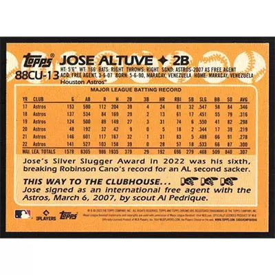 This is a 2023 Topps Chrome Update '88 Jose Altuve baseball card. The card is #88CU-13 and pictures show condition.