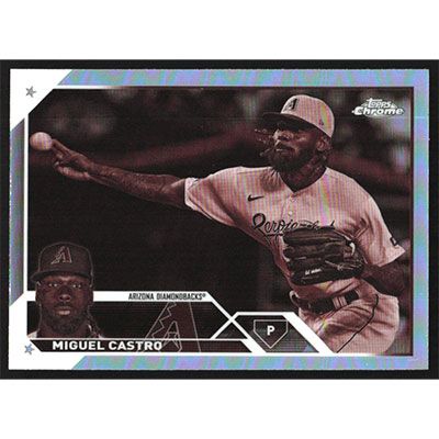 This is a 2023 Topps Chrome Update Sepia Refractors Miguel Castro baseball card. The card is #USC57 and pictures show condition. Team(s): Arizona Diamondbacks