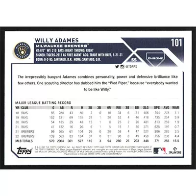 This is a 2023 Topps Chrome X-Fractors Willy Adames baseball card. The card is #101 and pictures show condition.