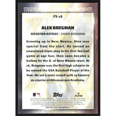 This is a 2023 Topps Favorite Sons Alex Bregman baseball card. The card is #FS-18 and pictures show condition.