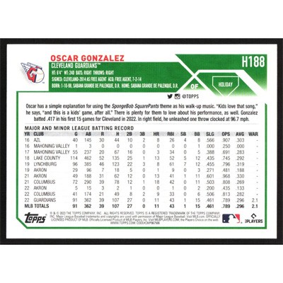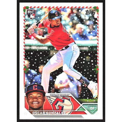 This is a 2023 Topps Holiday Oscar Gonzalez baseball card. The card is #H188 and pictures show condition.