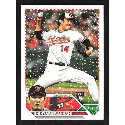 This is a 2023 Topps Holiday Shintaro Fujinami baseball card. The card is #H41 and pictures show condition. Team(s): Baltimore Orioles Rookie Card (RC)