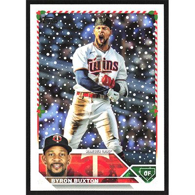 This is a 2023 Topps Holiday Byron Buxton baseball card. The card is #H49 and pictures show condition.