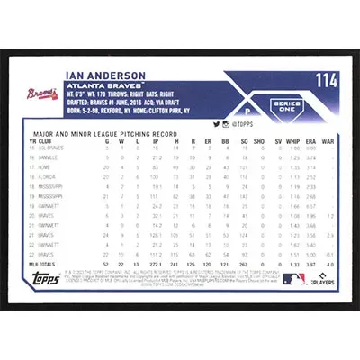 This is a 2023 Topps Rainbow Foil Ian Anderson baseball card. The card is #114 and pictures show condition.