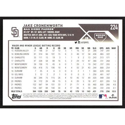 This is a 2023 Topps Rainbow Foil Jake Cronenworth baseball card. The card is #224 and pictures show condition.