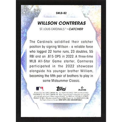 This is a 2023 Topps Stars of MLB Willson Contreras baseball card. The card is #SMLB-82 and pictures show condition.