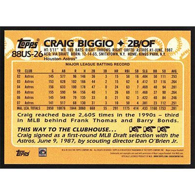 This is a 2023 Topps Update '88 Craig Biggio baseball card. The card is #88US-26 and pictures show condition.