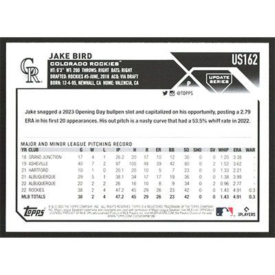 This is a 2023 Topps Update Jake Bird baseball card. The card is #US162 and pictures show condition.