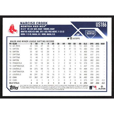 This is a 2023 Topps Update Narciso Crook baseball card. The card is #US186 and pictures show condition.