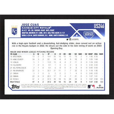 This is a 2023 Topps Update Jose Cuas baseball card. The card is #US246 and pictures show condition.