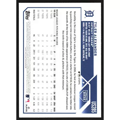 This is a 2023 Topps Update Tyler Alexander baseball card. The card is #US285 and pictures show condition.