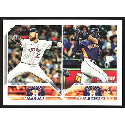 This is a 2023 Topps Update Matt Gage and Cesar Salazar Rookie Combos baseball card. The card is #US318 and pictures show condition. Team(s): Houston Astros Rookie Card (RC)