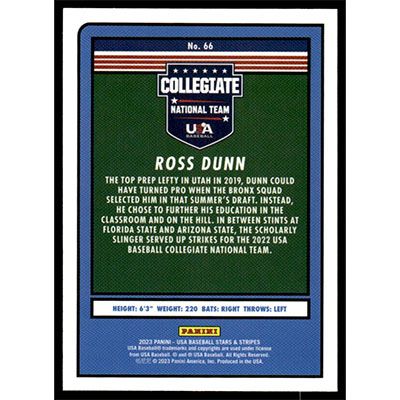 This is a 2023 USA Baseball Stars & Stripes Ross Dunn baseball card. The card is #66 and pictures show condition.