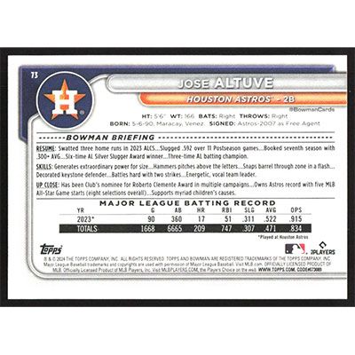 This is a 2024 Bowman Jose Altuve baseball card. The card is #73 and pictures show condition.