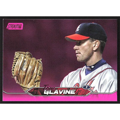 This is a 2024 Stadium Club Pink Foil Tom Glavine baseball card. The card is #87 and pictures show condition.