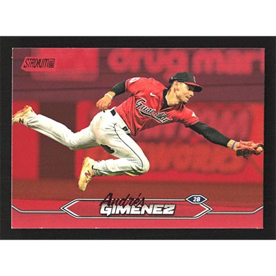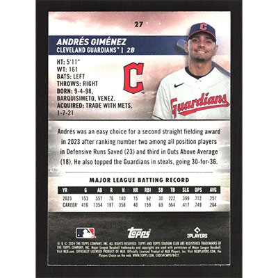 This is a 2024 Stadium Club Red Foil Andres Gimenez baseball card. The card is #27 and pictures show condition.
