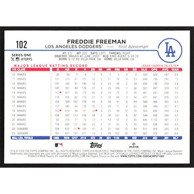 This is a 2024 Topps Freddie Freeman baseball card. The card is #102 and pictures show condition.
