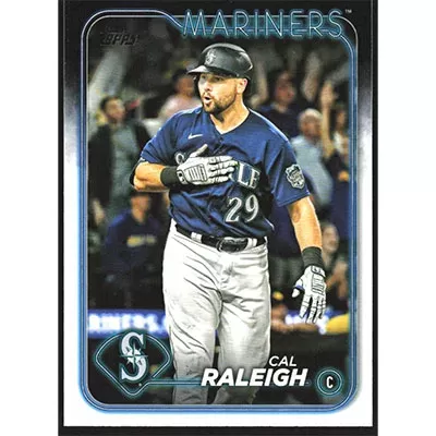 This is a 2024 Topps Cal Raleigh baseball card. The card is #122 and pictures show condition.