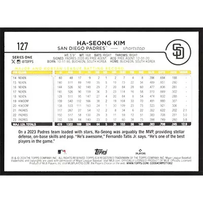This is a 2024 Topps Ha-Seong Kim baseball card. The card is #127 and pictures show condition.