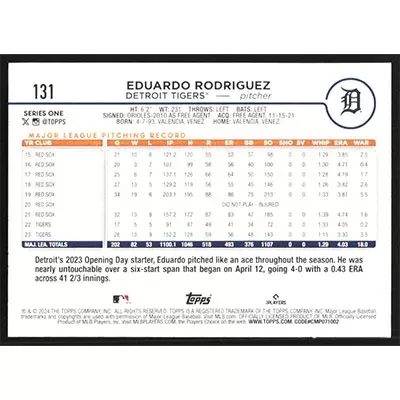 This is a 2024 Topps Eduardo Rodriguez baseball card. The card is #131 and pictures show condition.