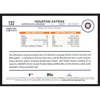 This is a 2024 Topps Houston Astros baseball card. The card is #132 and pictures show condition.