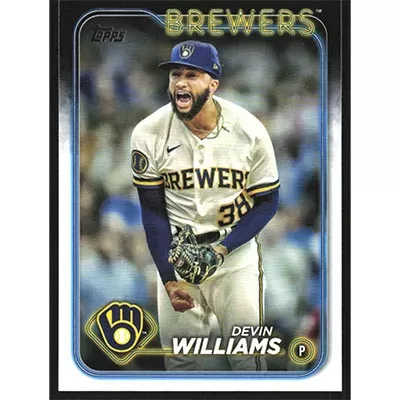 This is a 2024 Topps Devin Williams baseball card. The card is #135 and pictures show condition.