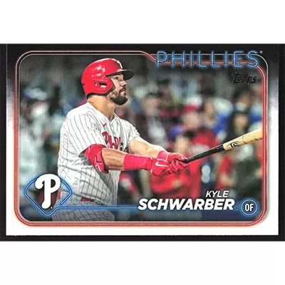 This is a 2024 Topps Kyle Schwarber baseball card. The card is #136 and pictures show condition.