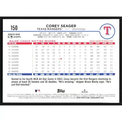 This is a 2024 Topps Corey Seager baseball card. The card is #150 and pictures show condition.