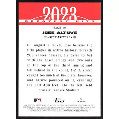 This is a 2024 Topps '23 Greatest Hits Jose Altuve baseball card. The card is #23GH-10 and pictures show condition.