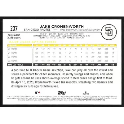 This is a 2024 Topps Jake Cronenworth baseball card. The card is #237 and pictures show condition.