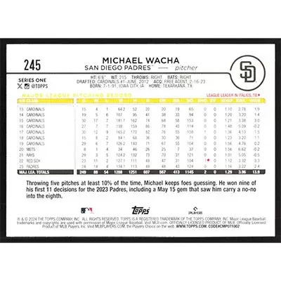 This is a 2024 Topps Michael Wacha baseball card. The card is #245 and pictures show condition.