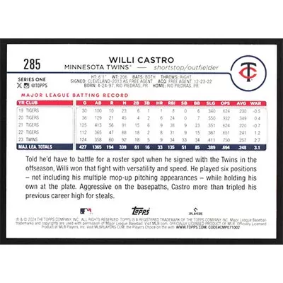 This is a 2024 Topps Willi Castro baseball card. The card is #285 and pictures show condition.