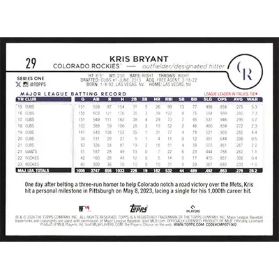 This is a 2024 Topps Kris Bryant baseball card. The card is #29 and pictures show condition.
