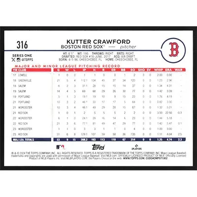 This is a 2024 Topps Kutter Crawford baseball card. The card is #316 and pictures show condition.