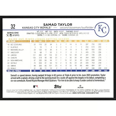 This is a 2024 Topps Samad Taylor baseball card. The card is #32 and pictures show condition.