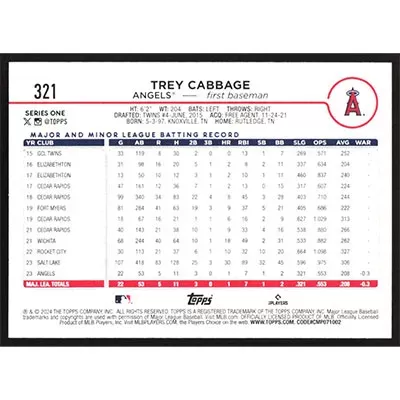 This is a 2024 Topps Trey Cabbage baseball card. The card is #321 and pictures show condition.