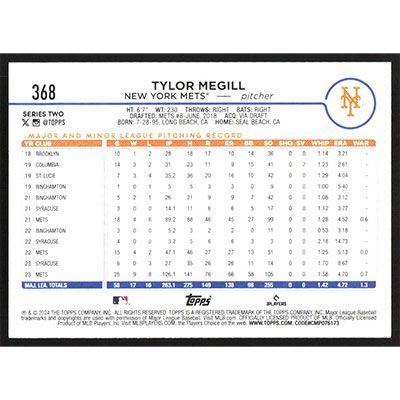 This is a 2024 Topps Tylor Megill baseball card. The card is #368 and pictures show condition.