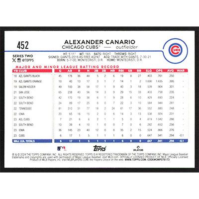 This is a 2024 Topps Alexander Canario baseball card. The card is #452 and pictures show condition.