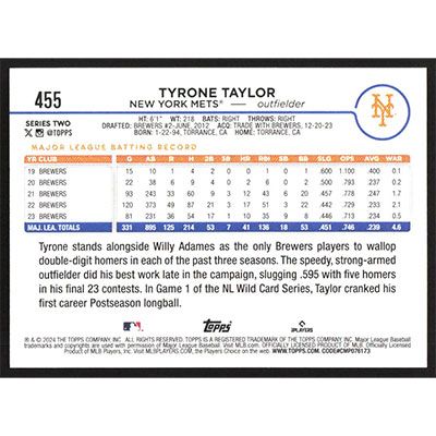 This is a 2024 Topps Tyrone Taylor baseball card. The card is #455 and pictures show condition.