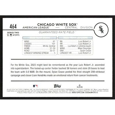 This is a 2024 Topps Team Card baseball card. The card is #464 and pictures show condition.