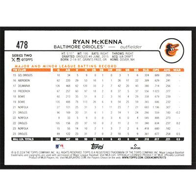 This is a 2024 Topps Ryan McKenna baseball card. The card is #478 and pictures show condition.