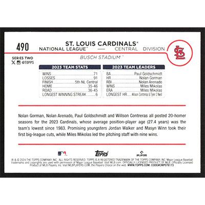 This is a 2024 Topps Team Card baseball card. The card is #490 and pictures show condition.