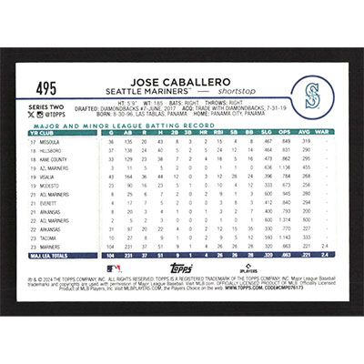 This is a 2024 Topps Jose Caballero baseball card. The card is #495 and pictures show condition.