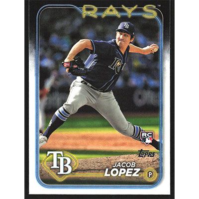 This is a 2024 Topps Jacob Lopez baseball card. The card is #502 and pictures show condition.