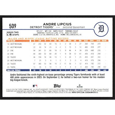 This is a 2024 Topps Andre Lipcius baseball card. The card is #509 and pictures show condition.