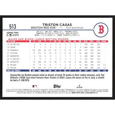 This is a 2024 Topps Tristan Casas Future Stars baseball card. The card is #513 and pictures show condition.