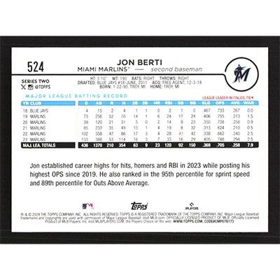 This is a 2024 Topps Jon Berti baseball card. The card is #524 and pictures show condition.