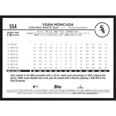 This is a 2024 Topps Yoan Moncada baseball card. The card is #554 and pictures show condition.